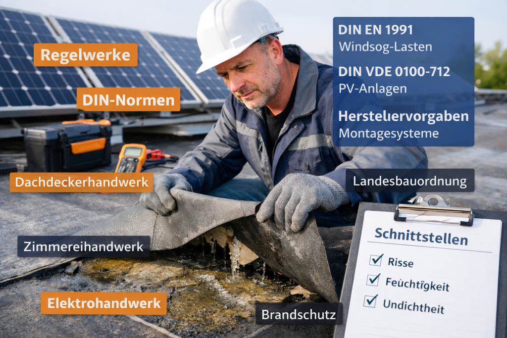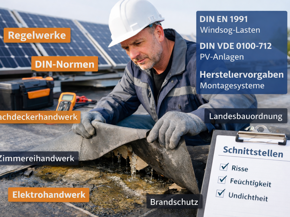 In der Praxis sehe ich immer wieder identische Fehler bei Photovoltaikanlagen auf Flachdächern: • Unzureichende Lastverteilung • Fehlende Schutzlagen bei Abdichtungen • Ungünstige Ballastierung • Nicht […]